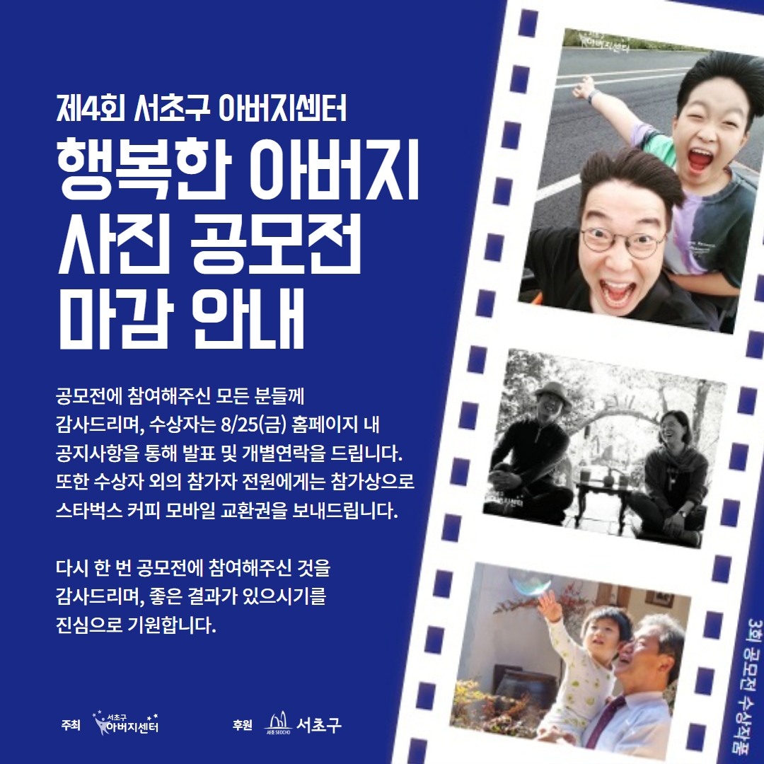 [★공지★] 제4회 행복한 아버지 사진 공모전 마감 및 수상 관련 내용 안내